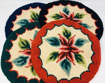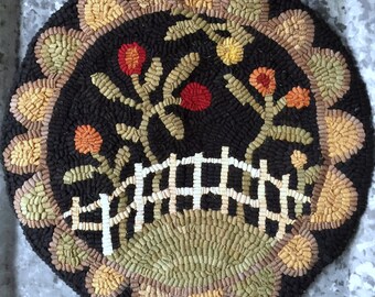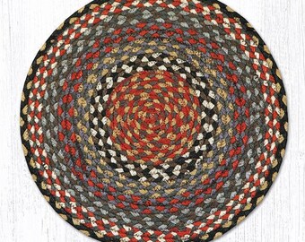 Dyed and braided jute some with licensed art stenciled to the center for a huge variety of choices - country primitive Christmas beach garden fall spring lodge western chicken crow and much more. Each chair pad is sewn together on both sides with a durable thread for added strength. Braided jute chair pads are 155 round with two coordinating ties to attach to chairs.